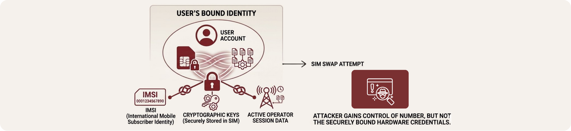 This creates a binding between the user’s account and the hardware elements of their device such as the IMSI, the cryptographic keys securely stored in the SIM, and the active session data managed by the operator.